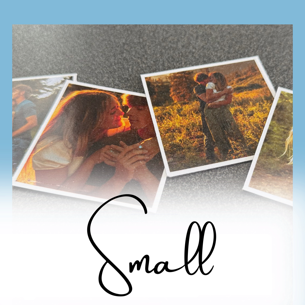 Our small photo magnets are handcrafted with care and printed on premium satin photo paper to bring your memories to life in stunning detail. Each magnet measures 2.75x2.75” — the perfect little keepsake to stick love on your fridge, locker, or workspace.